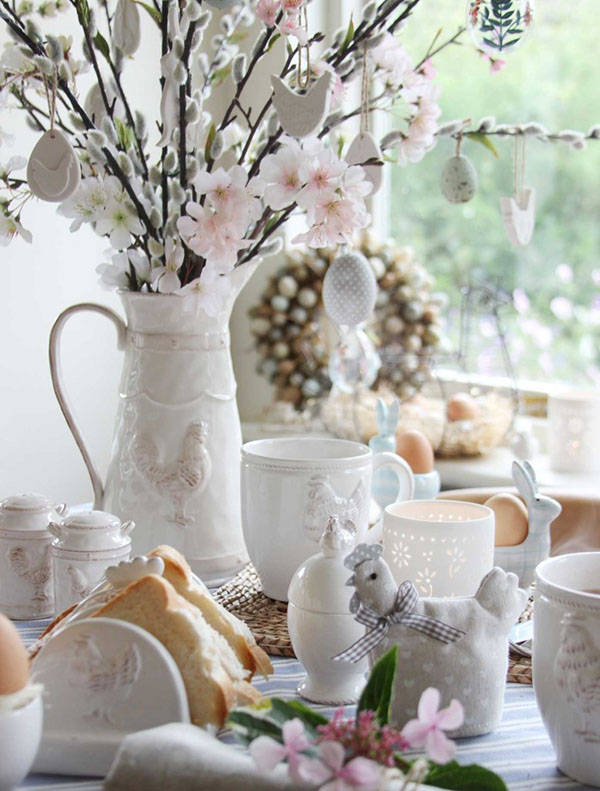 Sugary pastels with blossoms, bunnies and chicks, garlands, ceramics pieces and egg trees...
