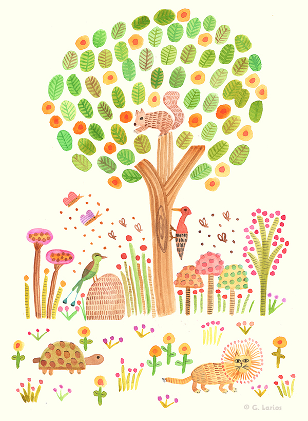 I went on to further my studies in Providence, Rhode Island at the Rhode Island School of Design (RISD). It was at RISD I developed my technique, and grew to love watercolor and gouache. I devoted long hours to my studio practice and eventually opened an etsy shop while I was still taking classes. It really helped me learn to navigate the business side of art. My true love though, will always be children's books. I wrote and illustrated my first one while I was still at RISD too. That book, OOKO, will be published this July by Tundra Books of Penguin Random House Canada.