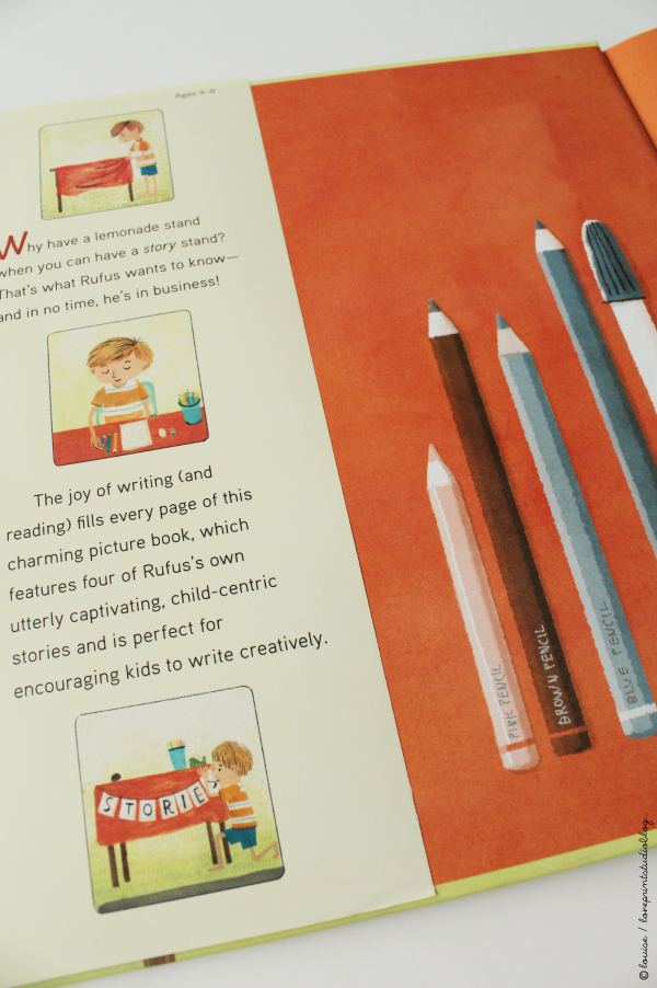 Its main character, Rufus, creates a story stand as opposed to a lemonade stall one summer, and decides to sell his story creations to friends.